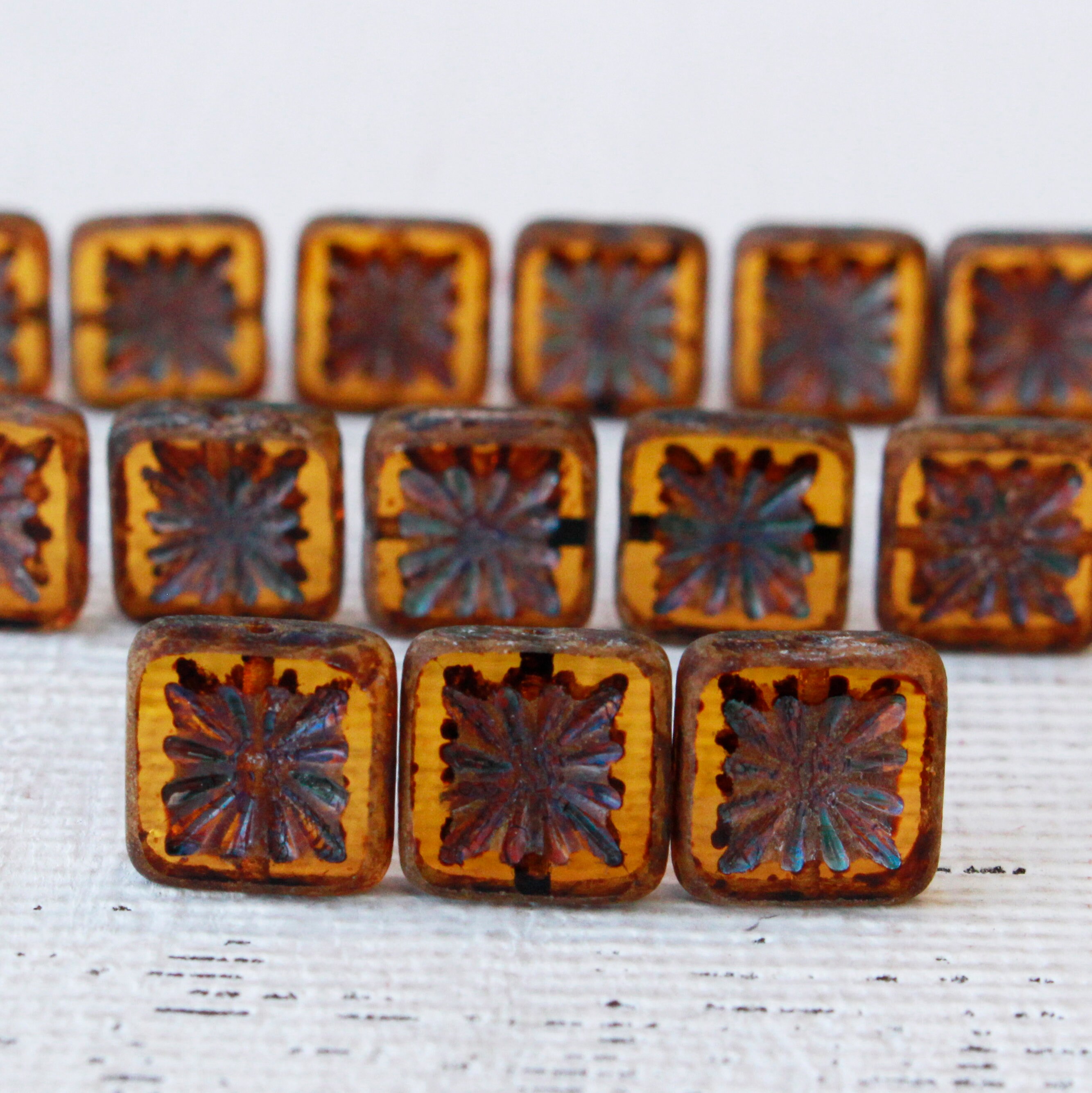 10mm Glass Tile Bead Star Tile Czech Glass Beads Jewelry Etsy