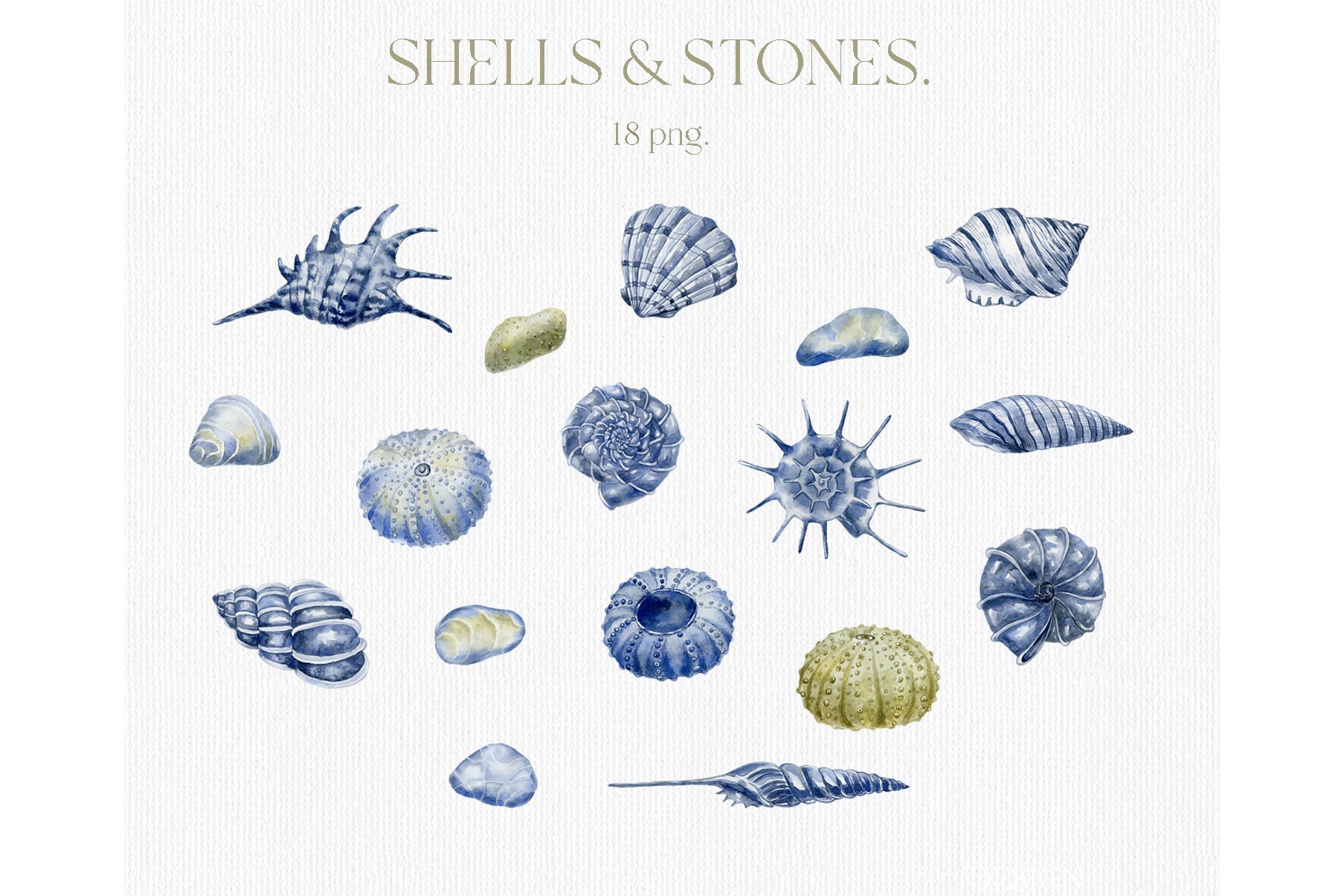 Watercolor Shells Stones Sea Urchins
